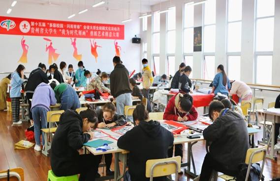 11月13日,贵州省第十五届“多彩校园·闪亮青春”大学生校园文化活动月—“我为时代刻画”剪纸艺术创意大赛在铜仁幼儿师专举行。安顺学院艺术学院2019级艺术设计学专业王彩云、马文斌、赵益三位同学组成团队参加了此次比赛,经过决赛,由我院院长罗文帝教授指导三位同学创作的“安顺地戏面具”套色剪纸艺术作品取得了二等奖的佳绩。