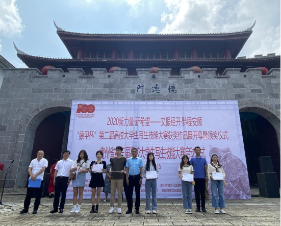 2021年6月15日下午,“‘藤甲杯’第二届高校大学生写生技能大赛获奖作品展开幕暨颁奖仪式”在安顺市多彩万象城“一个人的安顺乡愁文化园”进行。贵州省教育厅黄健副厅长、省美术家协会谌宏微主席、安顺市文联姚晓英主席等出席讲话。安顺学院周泽、龙义敏、陈登文三位老师,及一百余学生参加颁奖典礼。