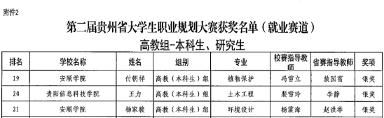 近日,省教育厅正式公布第二届贵州省大学生职业规划大赛获奖名单,安顺学院在此次大赛中表现优异,斩获2银1铜。