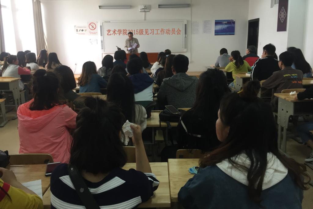 2018420日中午12点,我院在特教大楼12楼教室召开2019届毕业生教育见习动员大会。大会由龙义敏老师主持,副院长何谦、教学、科研与实践管理科科长付善莉到会指导,全体见习带队教师、班主任、艺术学院15级音乐学、美术学专业全体学生参加本次动员大会。