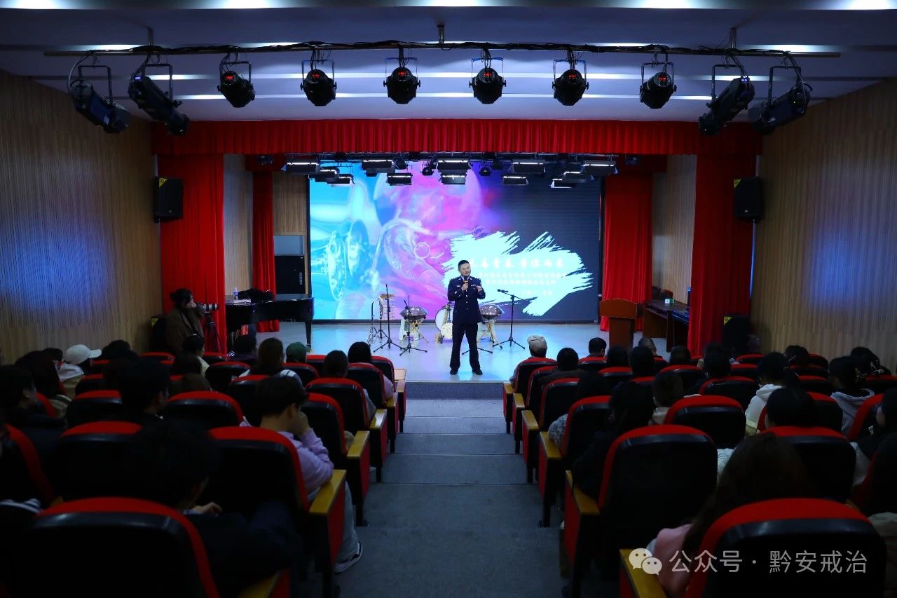 贵州省戒毒管理局心理矫治实验室将禁毒知识与手碟有机融合,以手碟为主要乐器,配合其他舒缓乐器,空灵纯净的手碟乐音在场地中回荡,瞬间抓住师生们的注意力,用节奏变化来变现吸毒前后生活差异,以不同旋律代表毒魔诱惑与内心挣扎,为音乐构思禁毒故事,诠释了从毒品危害的过程以及染上毒瘾的痛苦特征。在演奏的间隙,省安顺所民警结合音乐节奏,以生动案例讲述毒品危害,从身体侵蚀到家庭破碎,让大家深刻认识毒品狰狞面目。