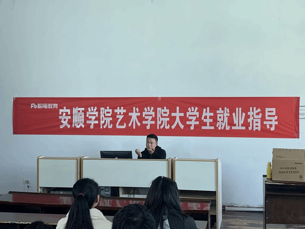 315下午安顺学院艺术学院大学生就业指导培训电教大楼0951教室举行艺术学院300余名毕业生参加就业指导培训,会议由艺术学院学生科科长蔡跃主持,粉笔教育老师主讲,培训时长2小时